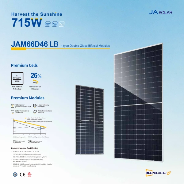 - High bifaciality and excellent power temperature coefficient achieves high energy yield